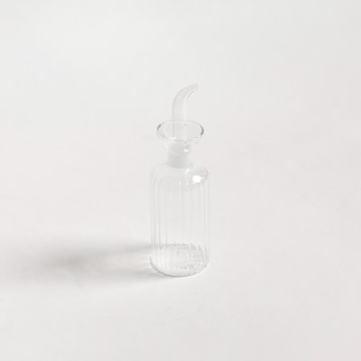Aceitera de vidrio facetada recta.