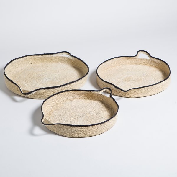 SET X 3 CANASTOS BAJOS CON MANIJAS KANPUR BLACK 9X55 / 8X51 / 7X47 CM *VASSA