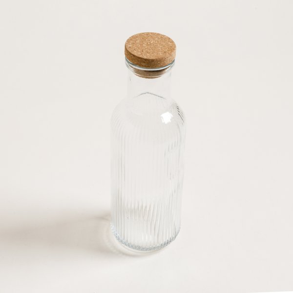 BOTELLA DE VIDRIO ACANALADA TAPA CORCHO 1000 ML