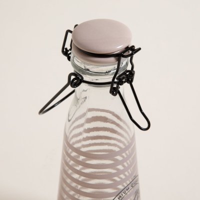 Botella de vidrio con tapa de cerámica en color visón.