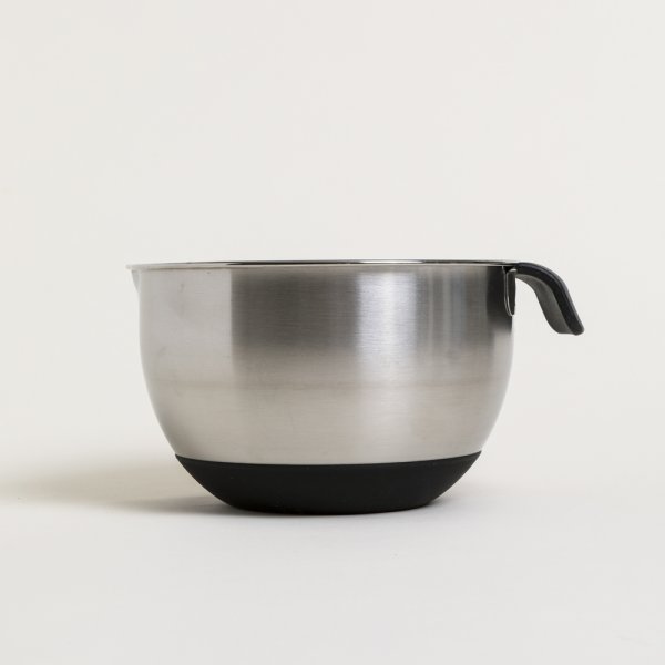 Bowl batidor con asa y base siliconada color negro de cómodo y práctico agarre.