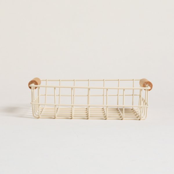 CANASTO ORGANIZADOR DE ACERO CREAM MANIJAS BAMBOO 18X14,5X5 CM