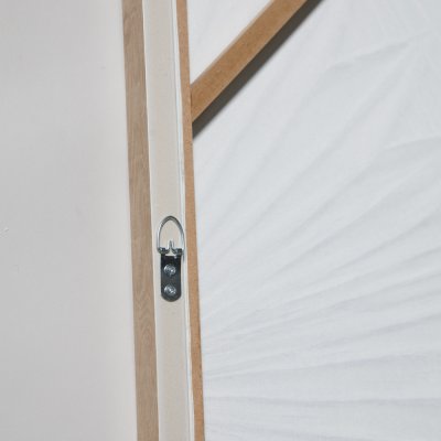 . Estructura de mdf, marco de poliestireno, lienzo de poliester, decoracion de yeso, pintura de acrilico, ganchos para colgar de acero.