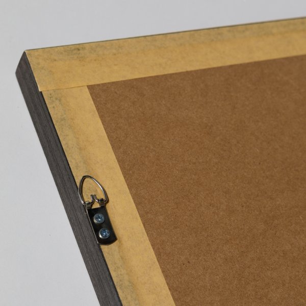 . Diseño en papel, marco de madera y ganchos colgantes de acero.
