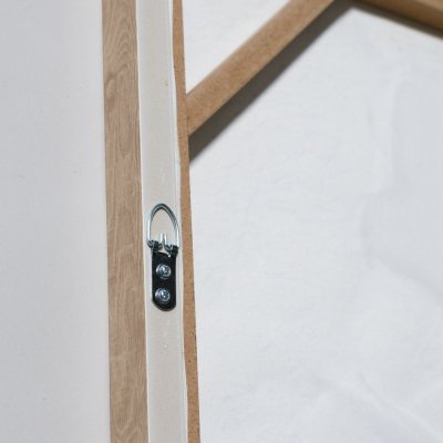 . Estructura de mdf, marco de poliestireno, lienzo de poliester, decoracion de yeso, pintura de acrilico, ganchos para colgar de acero.