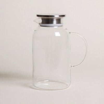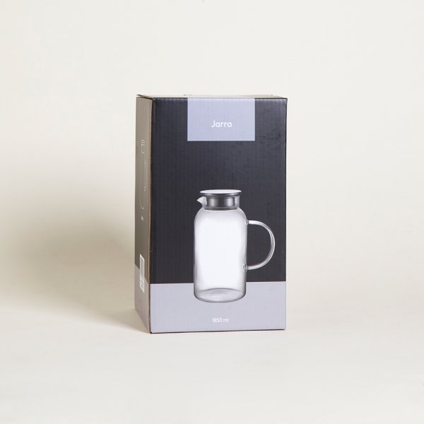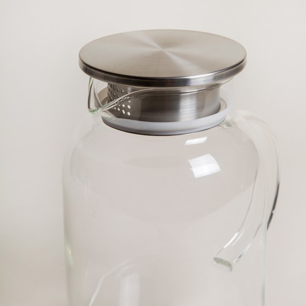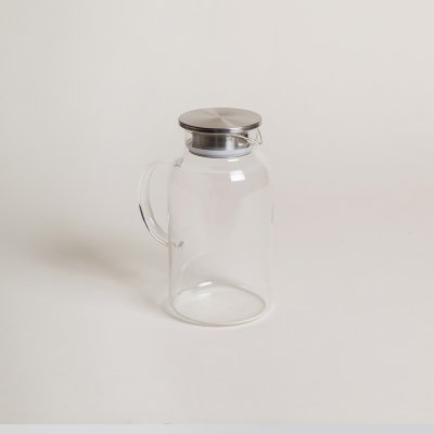 JARRA RECTA LISA DE VIDRIO CON TAPA DE ACERO 1850 ML