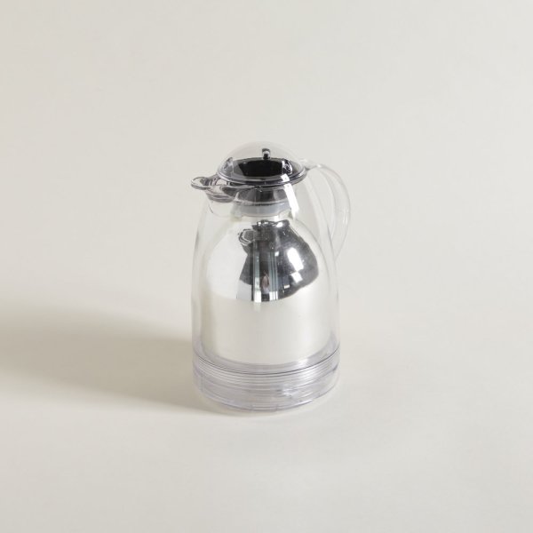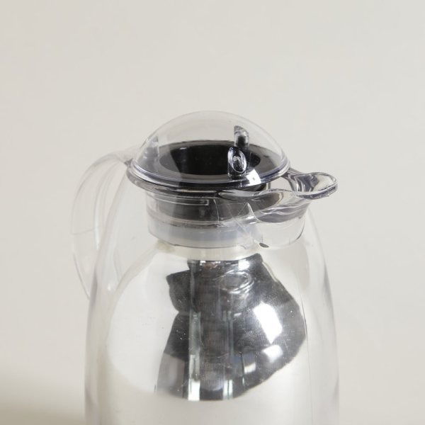Jarra térmica de acrílico translúcida con ampolla de vidrio espejada.
