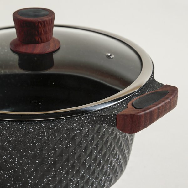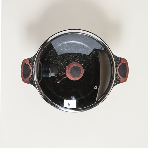 OLLA DARK GRANITE TAPA DE VIDRIO ASAS SILICONA 28CM