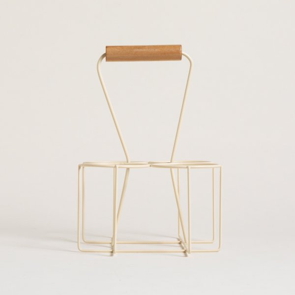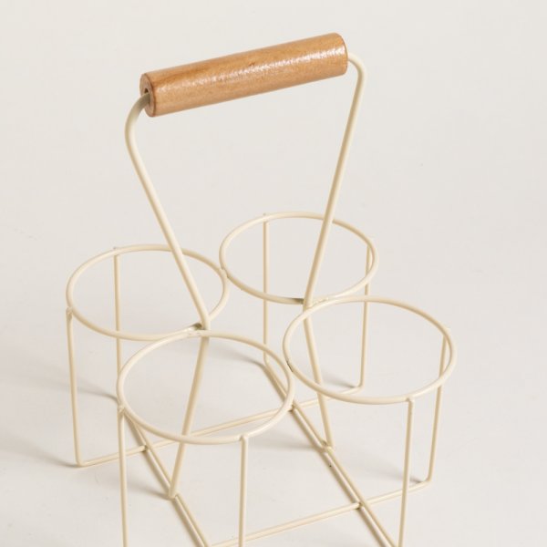 PORTA BOTELLAS X 4 DE ACERO CREAM Y MANIJA BAMBOO 15X15X21 CM