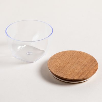RECIPIENTE CONICO ACRILICO TAPA DE MADERA 300 ML
