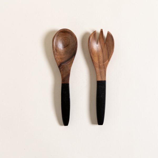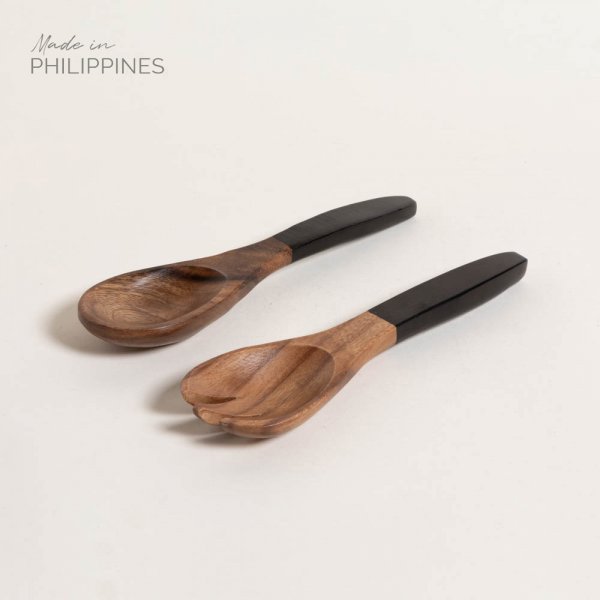 SET CUCHARA Y TENEDOR ACACIA MANILA BLACK MANGO PUNTA 25,4 CM