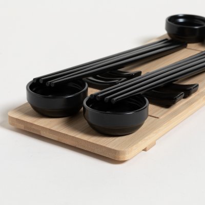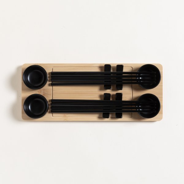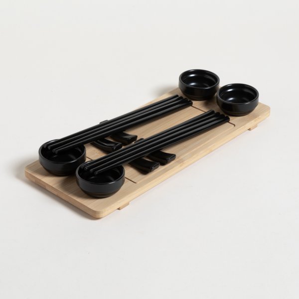SET DE SUSHI PARA 4 BAMBOO Y PORCELANA REDONDO NEGRO 33X13 CM