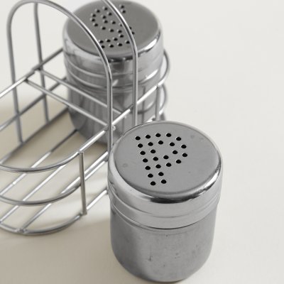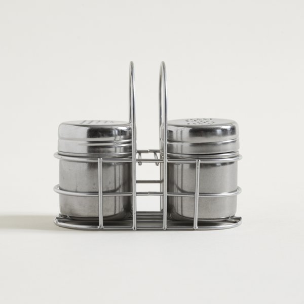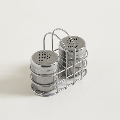SET SALERO Y PIMENTERO 6,5 X 5 CM DE ACERO CON SOPORTE