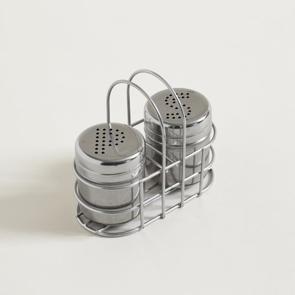 Set de salero y pimentero con soporte de metal de excelente calidad.