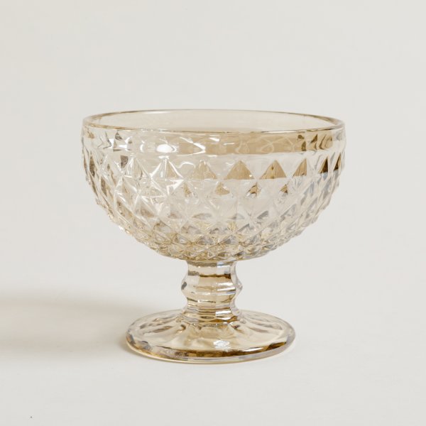 Set de compoteras hechas en vidrio prensado en color champagne.