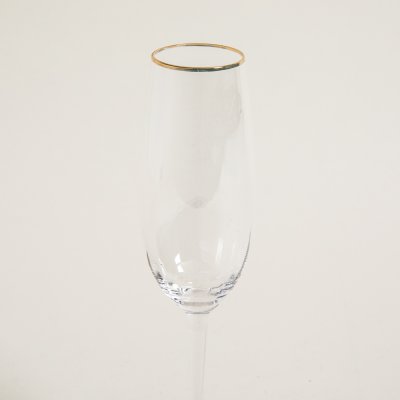 Set de copas de champange con borde dorado ideales para lucir bebidas.