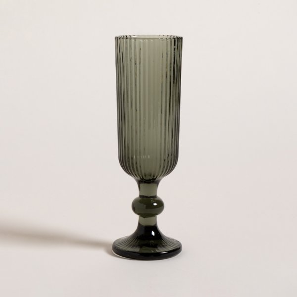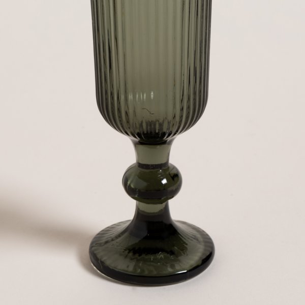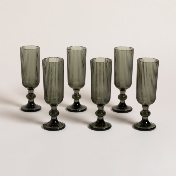 Set de copas trago largo, de vidrio prensado color fume, con diseño de rayas verticales.