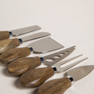 SET X 6 CUCHILLOS PARA QUESO DE MADERA DE ACACIA