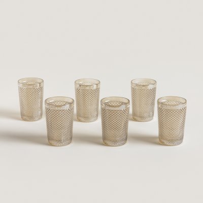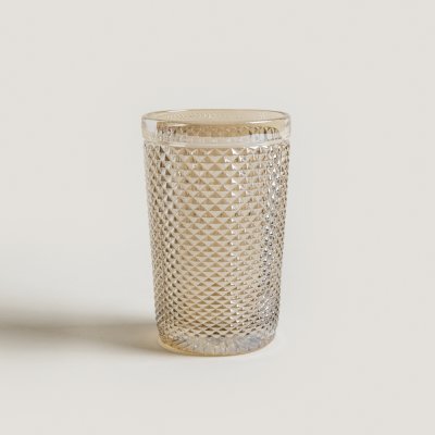 Set de vasos realizados en vidrio prensado, color champagne.