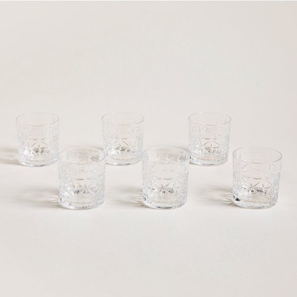 Set de vasos de whisky hechos en vidrio prensado de excelente calidad.