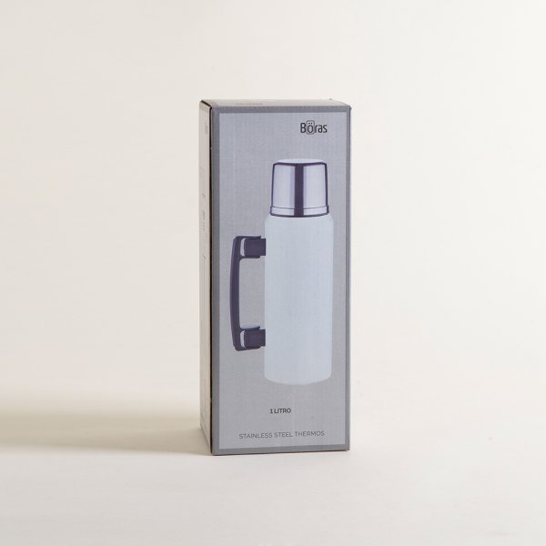 TERMO CAMPING DE ACERO INOXIDABLE BLANCO CON ASA ABATIBLE 1000 ML