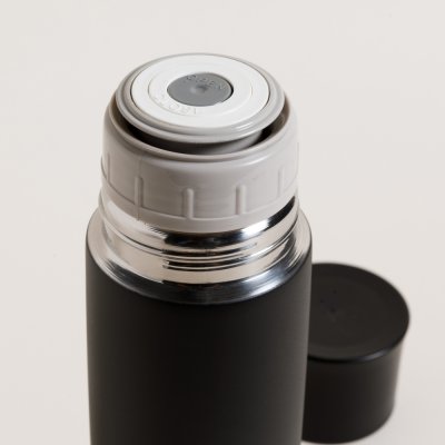 TERMO DE ACERO INOXIDABLE NEGRO TAPA PLANA 750 ML
