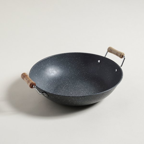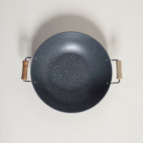 WOK CON MANIJAS DE MADERA LINEA GRANITE 29CM