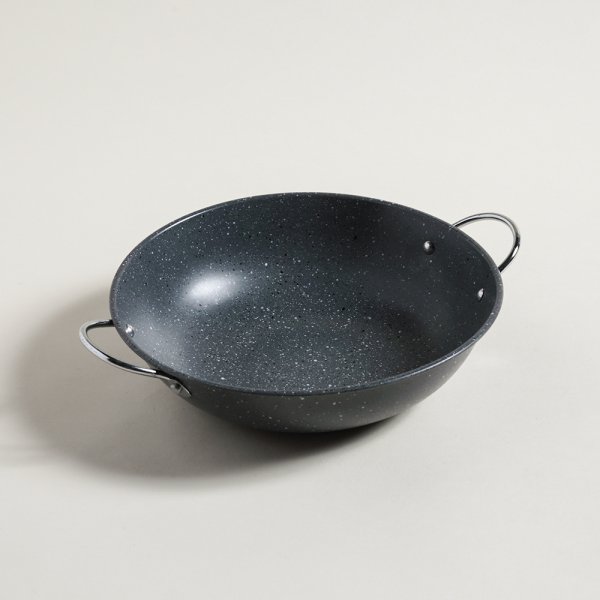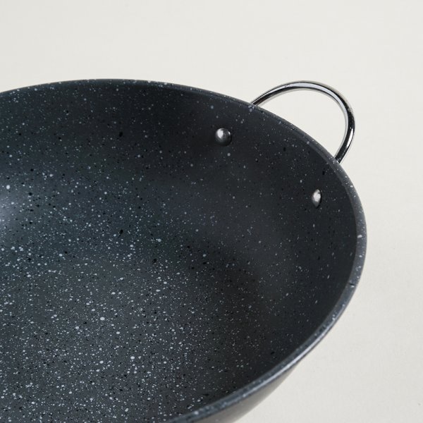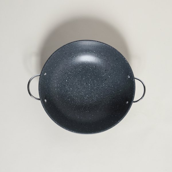 WOK C/ ANTIADHERENTE GRAY GRANITE CON MANIJAS ACERO 24 CM