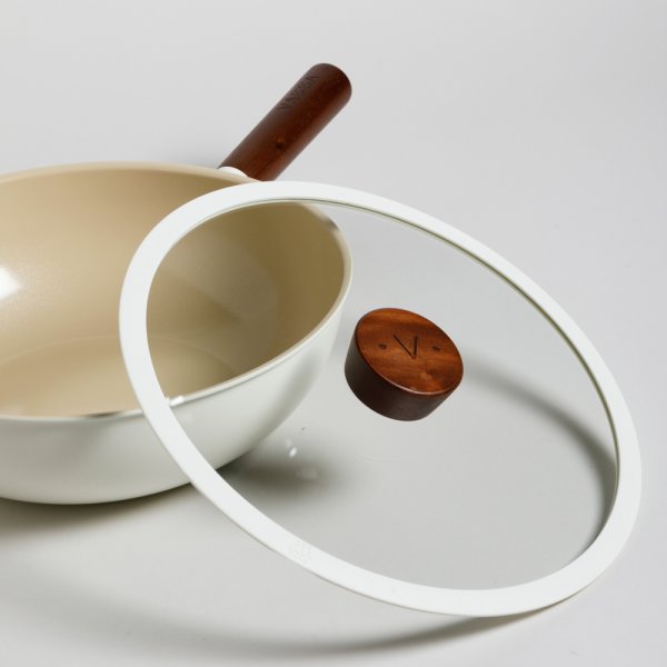 WOK LUND ANTIADHERENTE TAPA DE VIDRIO Y MANGO DE MADERA 28 CM