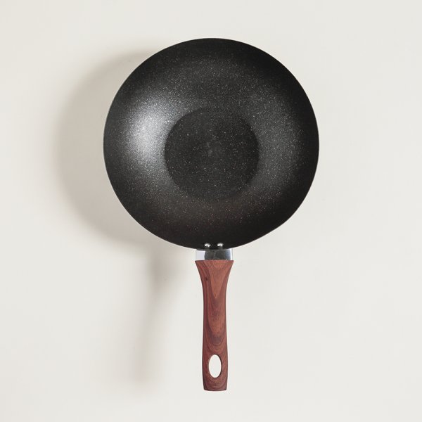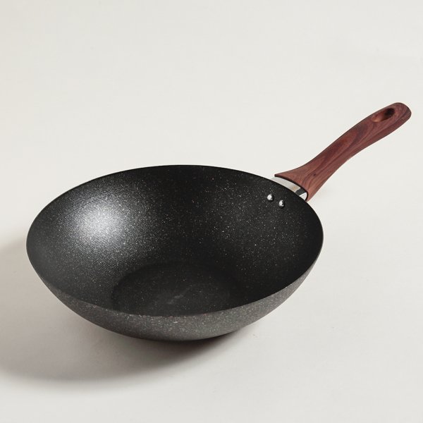 WOK NEGRO MANGO DE SILICONA SIMIL MADERA 30 CM